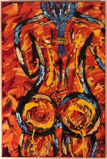 From the start he used different themes to make series of paintings. The first theme he used was 'Pregnant Women'. A hommage to the power of reproduction that women have. By using oilpaint he is able to give the paintings a 3D structure, and makes it possible to mix different colors right on the canvas!